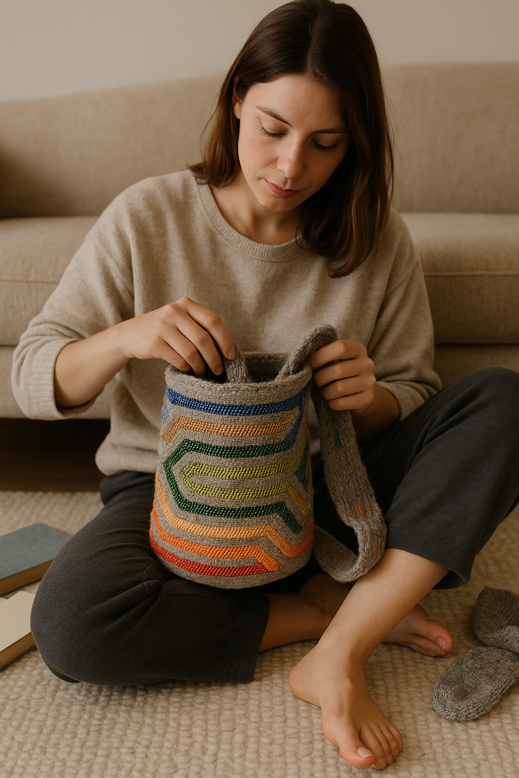 - Elaborada con lana de alpaca orgánica y chaquiras checas multicolor