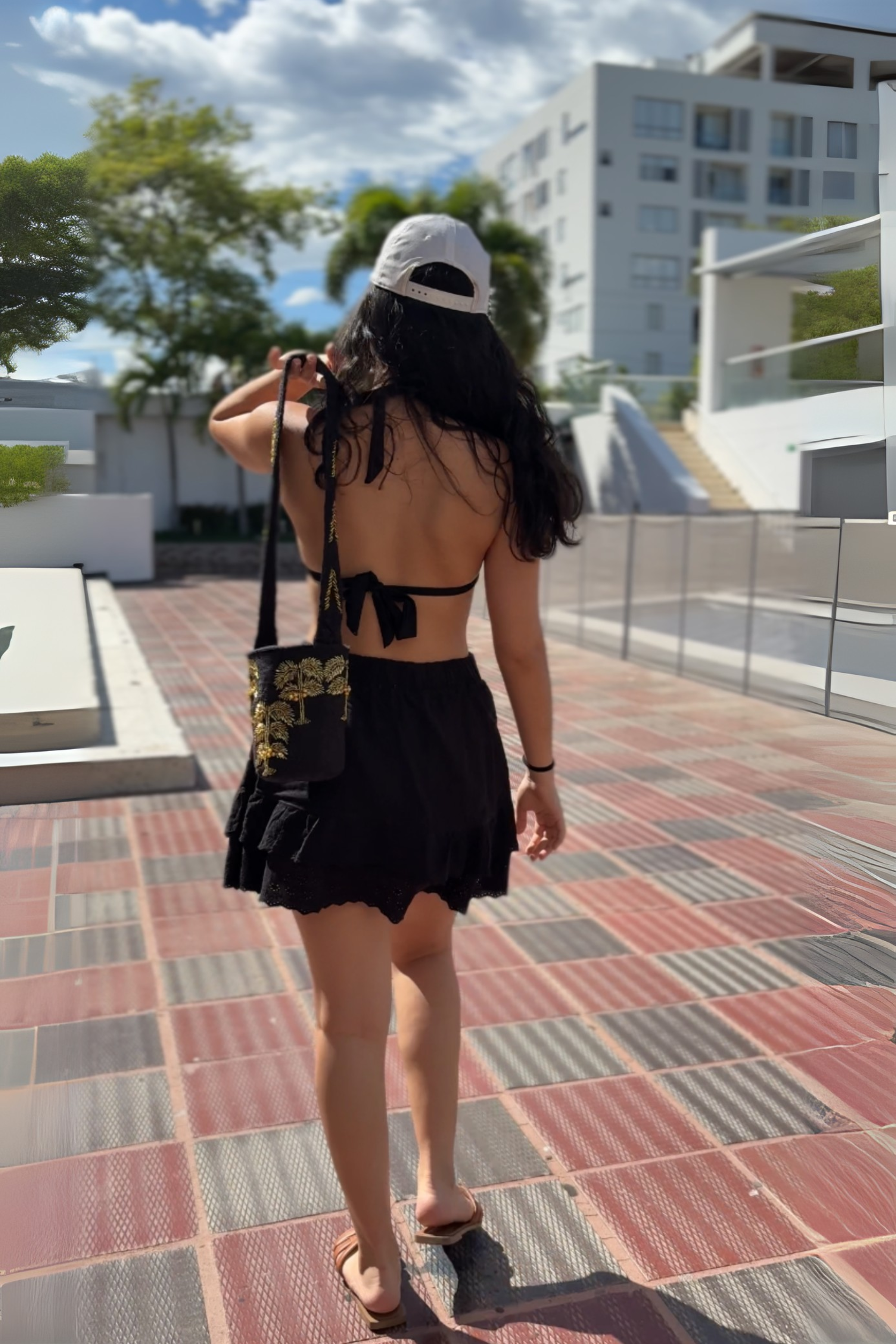 - Diseño bordado de palmas tanto en el cuerpo como en el strap